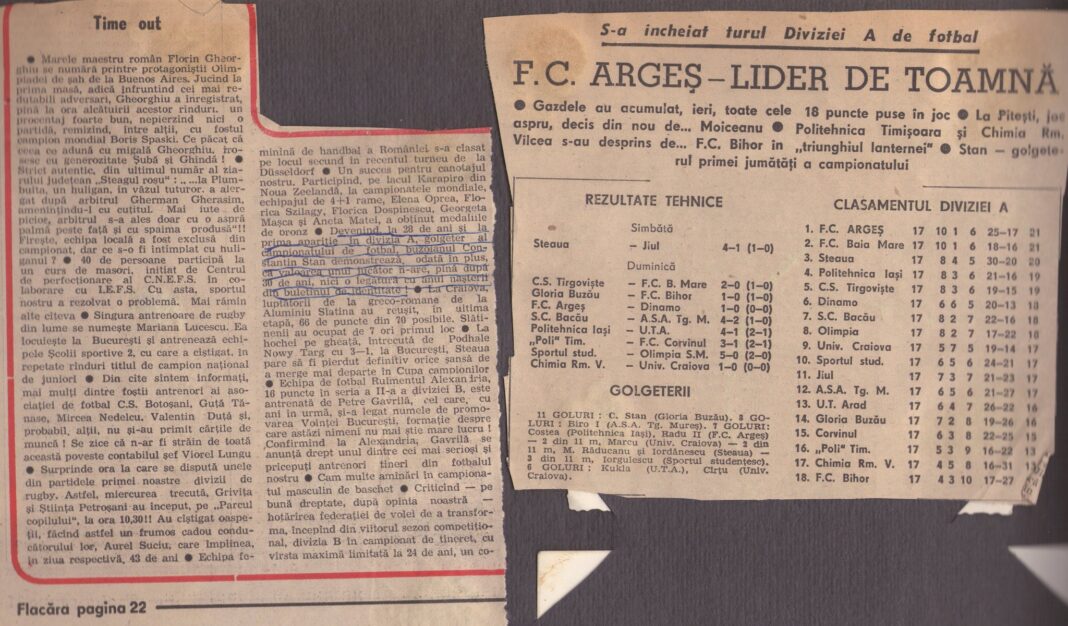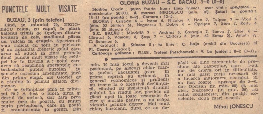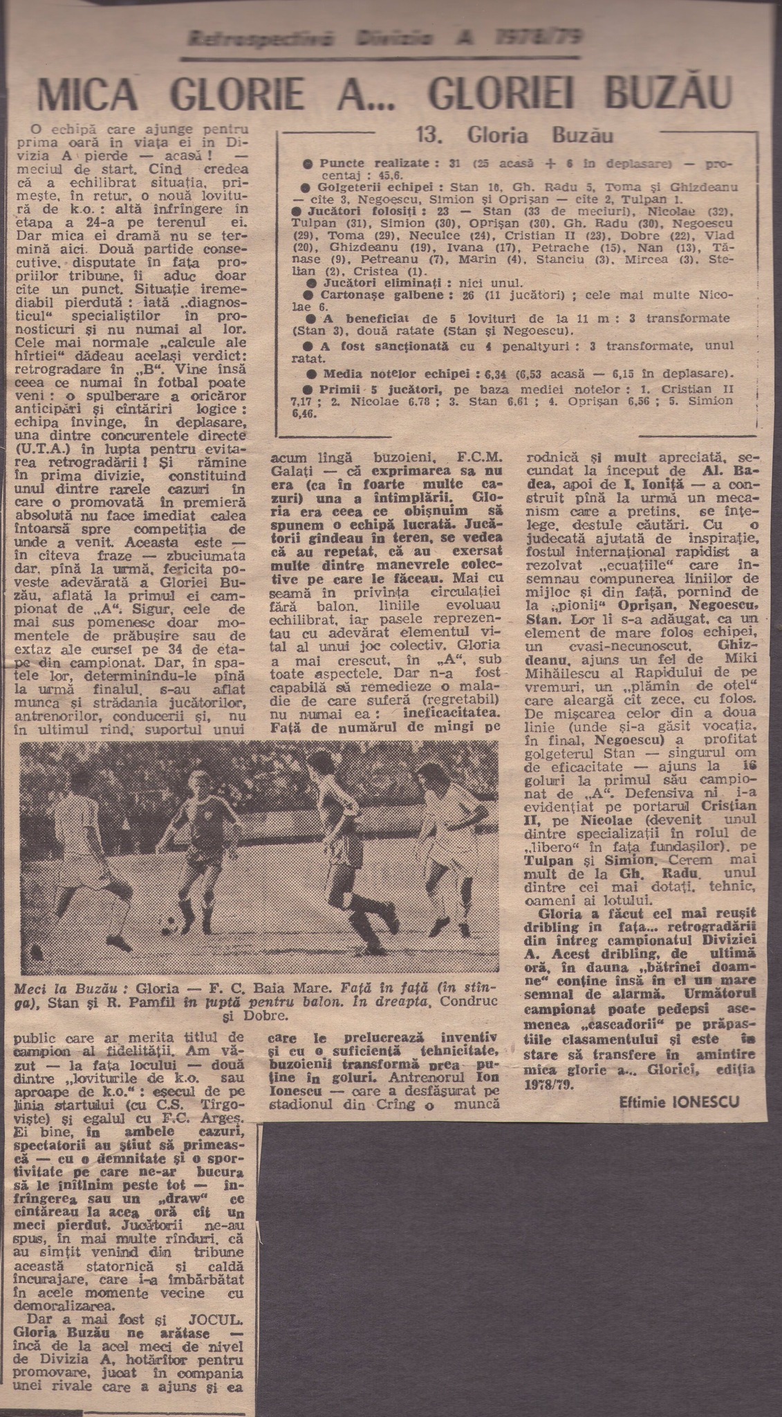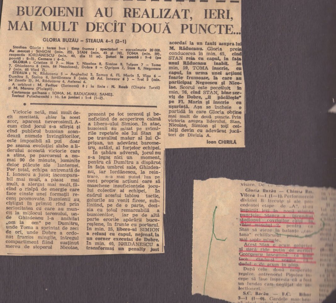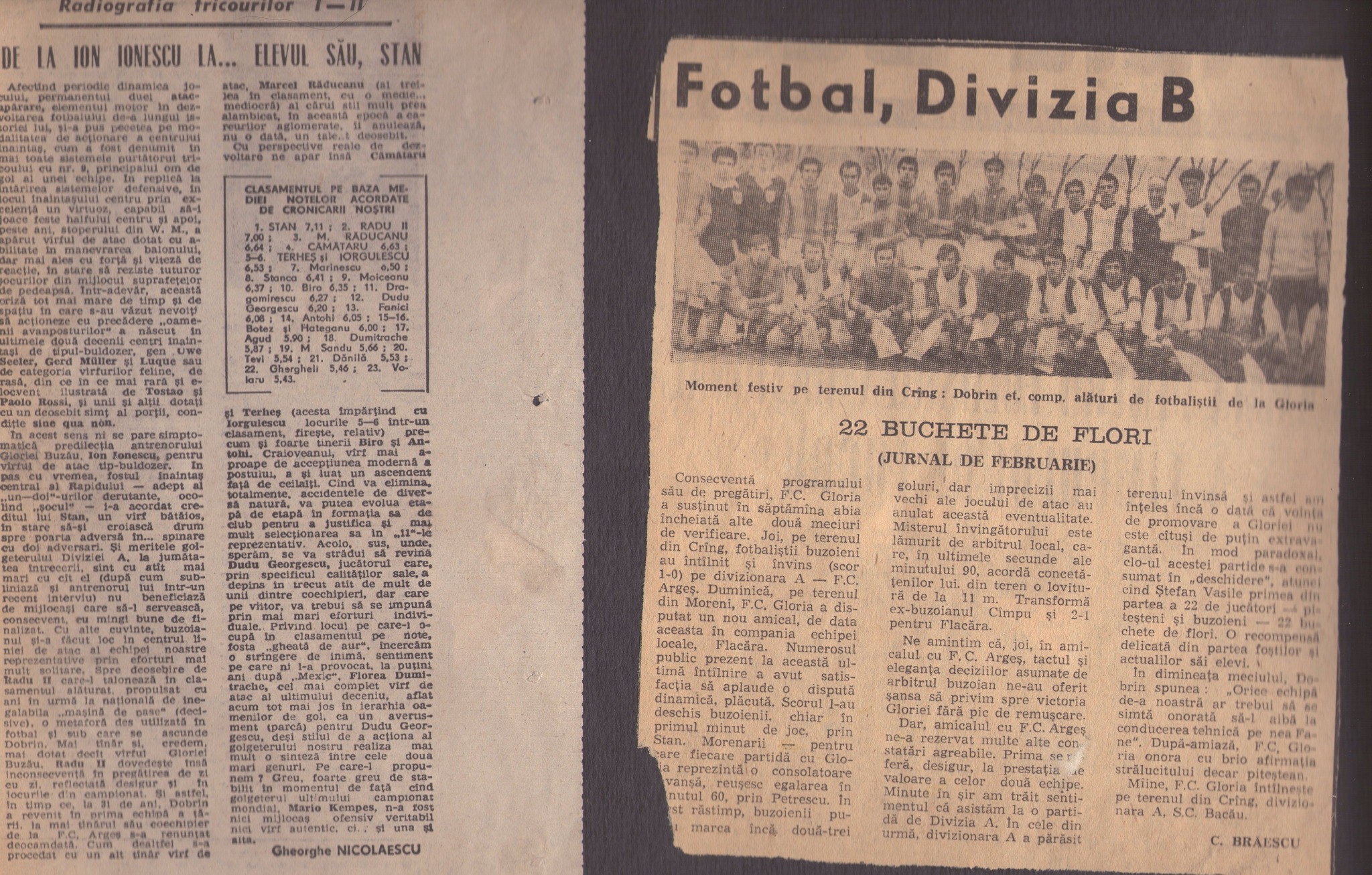 Dobrin m-a avertizat că nu am cum să ies golgheter. Nu l-am crezut. Pe vremea aceea golgheterii se stabileau în funcţie de anumite interese” – a spus după finalul campionatului Stan Constantin, Gloria Buzău 1972-1980.